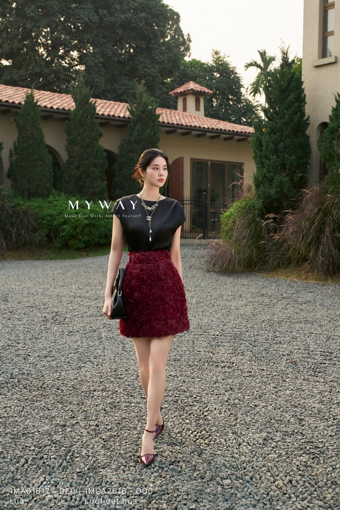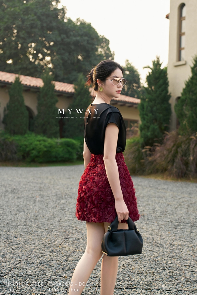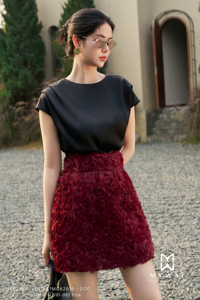 Outlet | Chân váy chữ A ngắn họa tiết hoa hồng