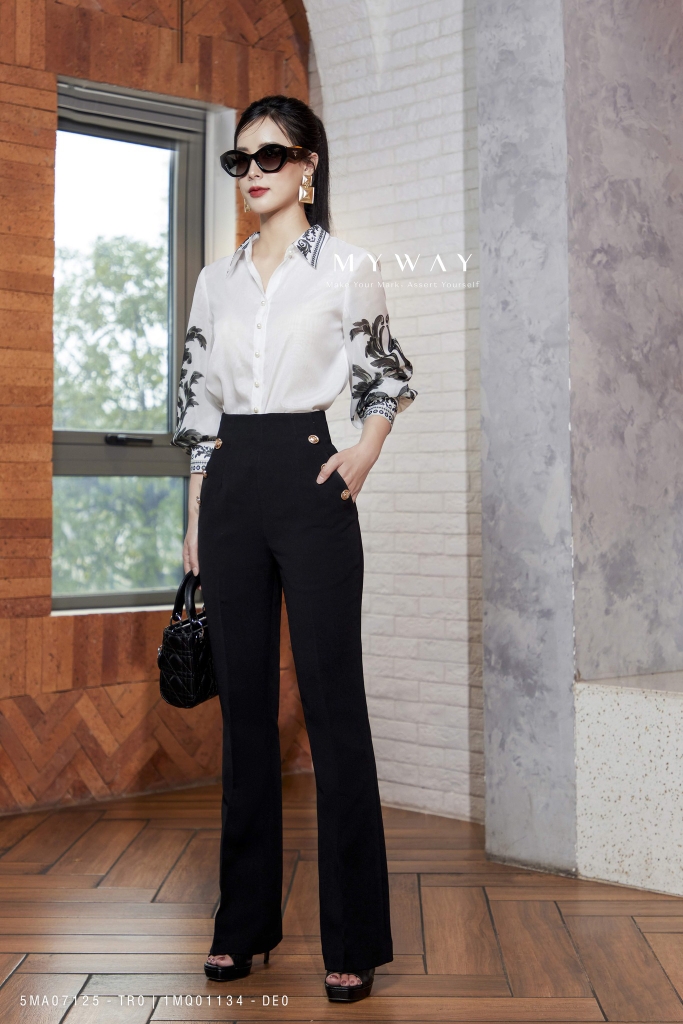 Mix&match: Phối với set bộ My Way gợi ý hay áo kiểu cùng tông màu và phụ kiện đơn giản: mắt kính, bông tai hay một đôi cao gót kiểu dáng hiện đại,... là bạn đã có cho mình một Outfit đa dụng dù là cho nơi công sở hay dạo phố thanh lịch và thoải mái rồi.