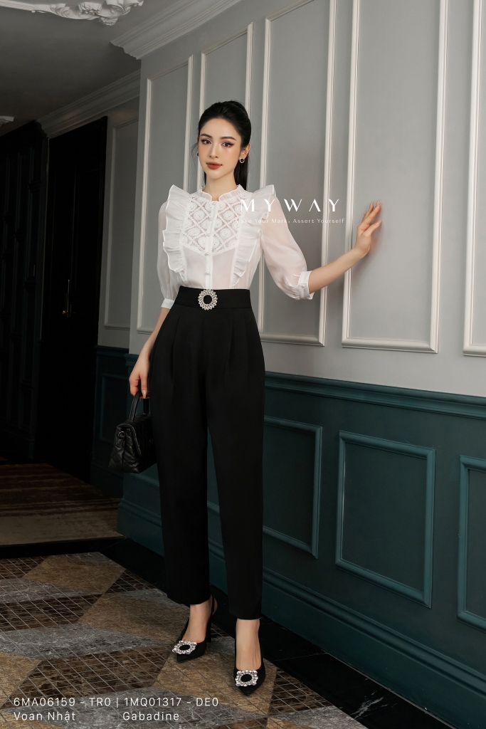 Mix&match: Phối với set bộ My Way gợi ý hay áo sơ mi/ áo kiểu cùng tông màu hoặc những phụ kiện đơn giản: mắt kính, bông tai hay một đôi cao gót kiểu dáng hiện đại,... là bạn đã có cho mình một Outfit đa dụng dù là cho nơi công sở hay dạo phố thanh lịch và thoải mái rồi.