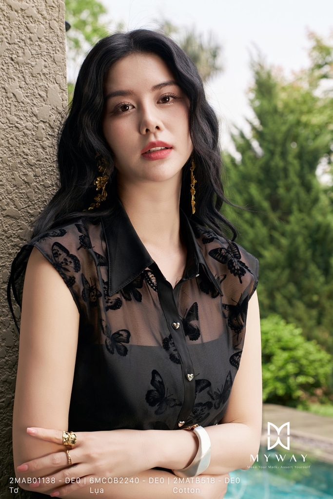 Outlet | Áo sơ mi kiểu vai chờm họa tiết cánh bướm