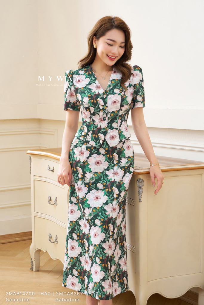 Áo sơ mi dáng ôm vừa vặn, cổ tim duyên dáng, tay ngắn trẻ trung, độ dài ngang hông hiện đại. Thiết kế tối giản không túi, không lót nhưng nổi bật với họa tiết hoa lá xanh rêu độc đáo, sắc nét, tạo điểm nhấn đầy tinh tế cho trang phục.Sản phẩm được chế tác từ chất liệu Gabadine nhập khẩu cao cấp, xử lý kỹ lưỡng để giữ phom chuẩn chỉnh, tôn dáng mà vẫn đảm bảo sự thoải mái cho người mặc.Chiếc áo mang đến vẻ thanh lịch, phong cách hiện đại và khả năng phối đồ linh hoạt – từ kết hợp cùng chân váy công sở đến quần jeans năng động, đều toát lên sự cuốn hút tinh tế và tự tin.