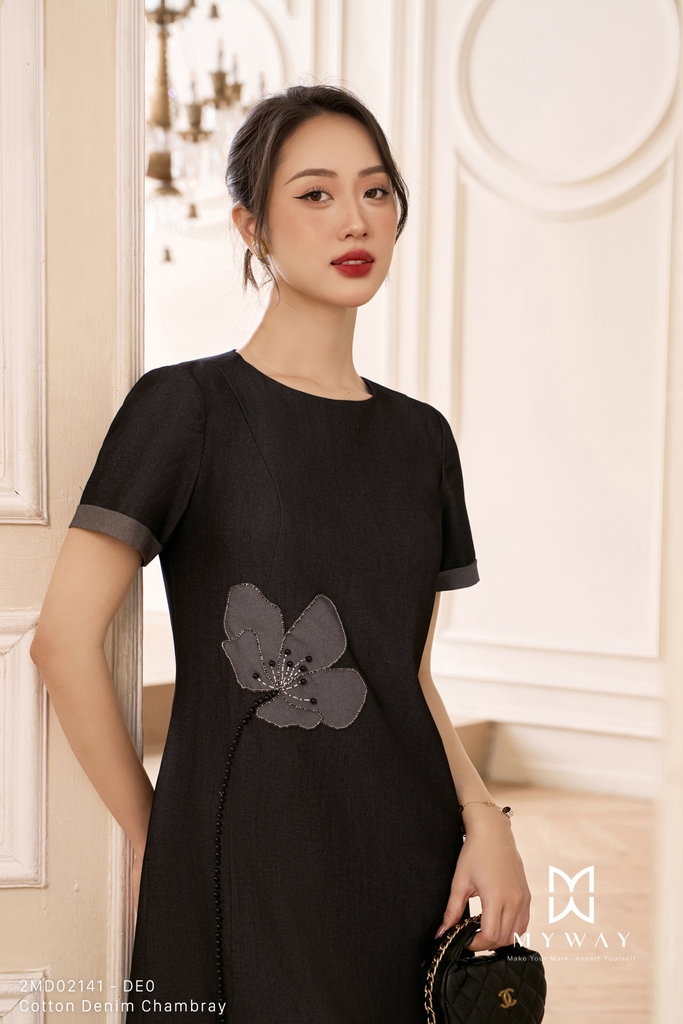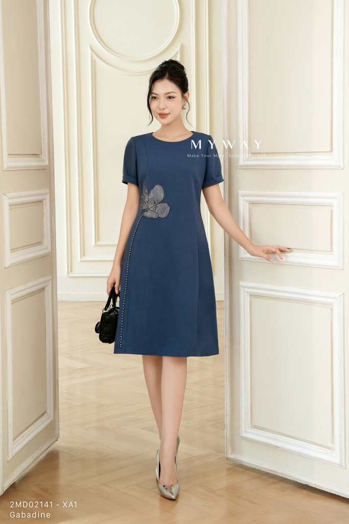 Đầm suông cổ tròn, dáng suông vừa, dài qua gối. Tinh tế cùng kiểu dáng tay ngắn thanh lịch cùng chi tiết đính hoa đá nơi eo mang lại cảm giác hiện đại, trẻ trung. Đầm suông sở hữu sắc xanh navy và đen quyền lực, thiết kế ứng dụng cao phù hợp mọi hoạt động trong ngày.