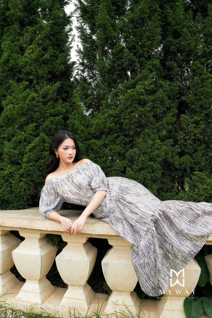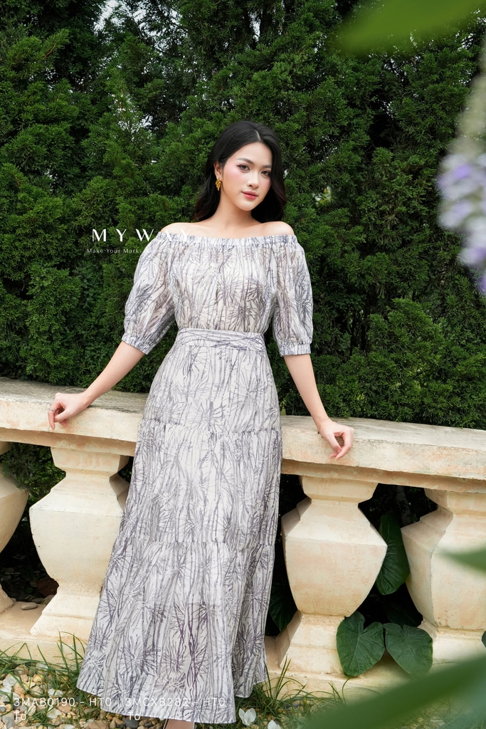 Chân váy xòe 3 tầng, dài qua bắp, có khóa sau, không túi, có lót. Tinh tế với họa tiết vải hỗn hợp cùng gam màu nền trắng họa tiết ghi. Chất liệu tơ cao cấp mang lại sự thoải mái cho thượng khách, toát lên vẻ thanh tao, dịu dàng.