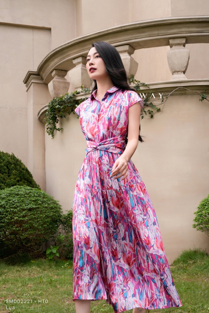 Đầm xòe với phần thân trên ôm nhẹ, cổ biến kiểu và vai chờm tạo nên vẻ mềm mại, nữ tính. Chất liệu lụa nhập khẩu cao cấp được xử lý khéo léo giúp định form dáng và mang lại cảm giác thoải mái khi mặc. Họa tiết vải in sắc nét, phối màu nghệ thuật đầy ngẫu hứng là điểm nhấn nổi bật. Kết cấu váy tinh tế, không túi, có khóa sau và lót trong, phù hợp cho những quý cô yêu phong cách hiện đại, thanh lịch và dễ ứng dụng.