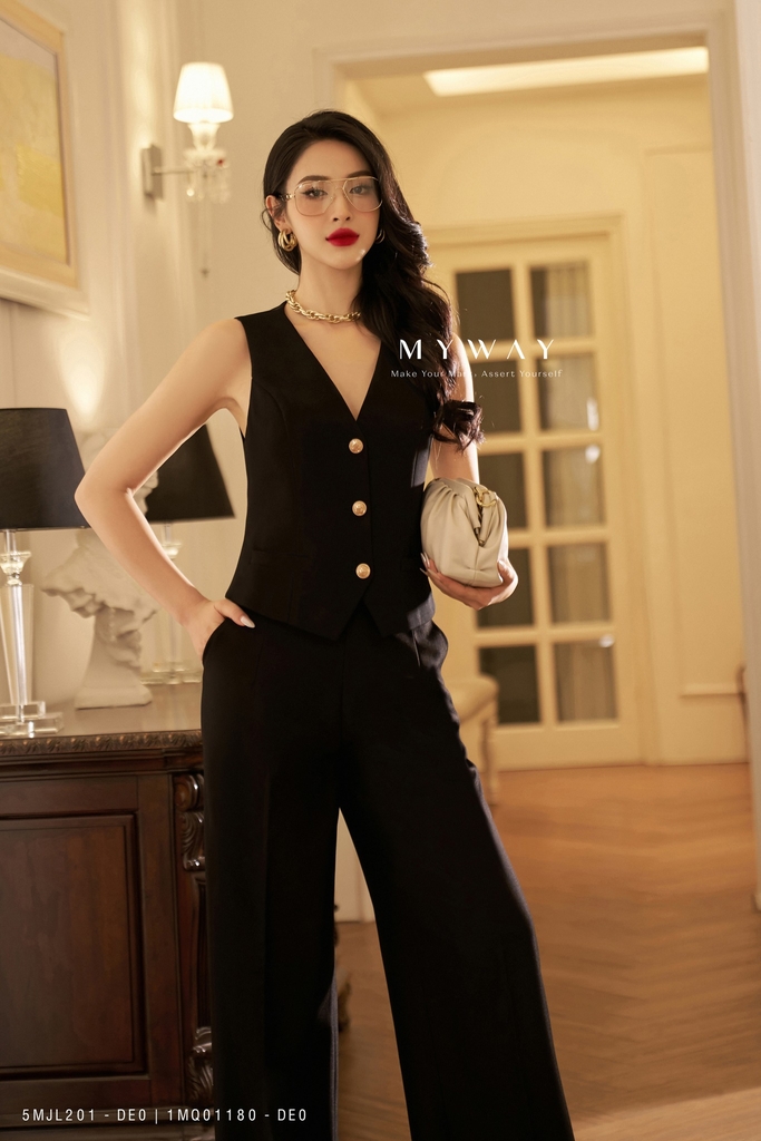 Thiết kế: Áo kiểu gile dài ngang hông, có lót để thoải mái khi mặc. Tinh tế cùng cổ tim biến kiểu nổi bật với đính cúc cao cấp mang lại vẻ đẹp sành điệu cho quý cô. Áo không có tay, ôm chiết eo tôn dáng cùng với gam màu đen trơn đơn giản nhưng vô cùng thời thượng giúp quý cô nổi bật trong đám đông.