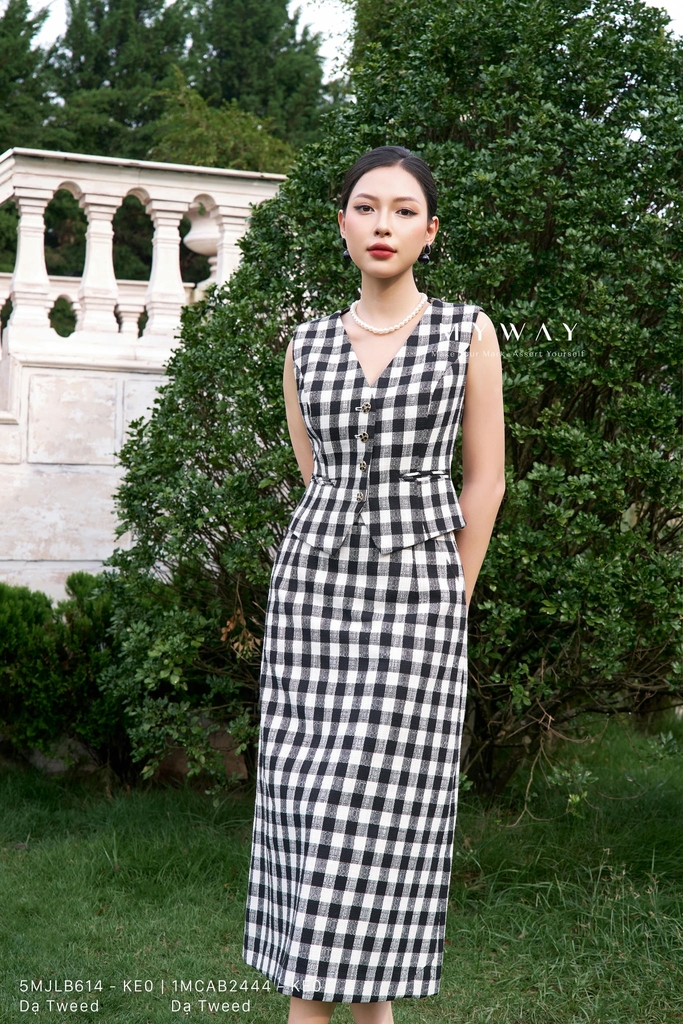 Áo gile không tay, dài ngang hông, không có lót, trẻ trung, cá tính. Tinh tế cùng khuy áo ấn tượng và họa tiết kẻ caro thanh lịch, tôn da cho người mặc. Tạo điểm nhấn với thắt lưng cá tính và cổ tim thời thượng tạo điểm nhấn cho mọi tín đồ.