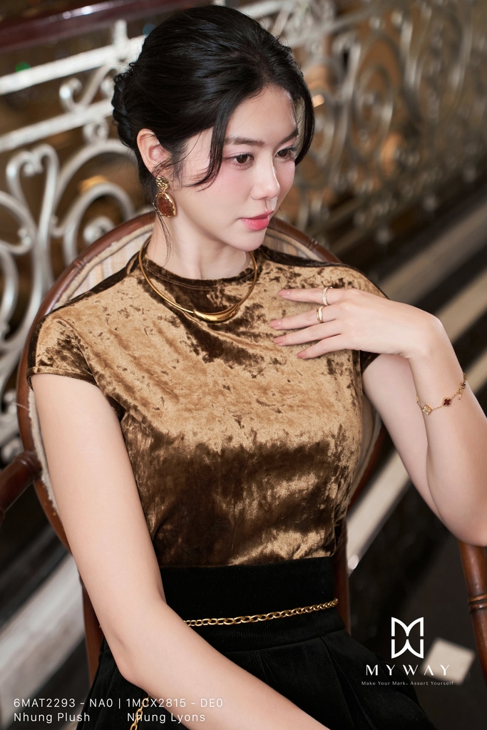 Áo kiểu dáng suông vừa với cổ cách điệu tinh tế và chiều dài ngang mông, tay ngắn thoải mái, mang đến nét hiện đại nhưng vẫn thanh lịch. Được thiết kế từ chất liệu nhung Plush (nhung mềm) nhập khẩu cao cấp, sản phẩm giữ phom chuẩn chỉnh, bề mặt vải mềm mại, sang trọng, tạo sự cuốn hút riêng biệt. Gam màu nâu và đen cổ điển hòa quyện, vừa dễ mặc vừa dễ phối đồ, giúp tôn lên vóc dáng và che khuyết điểm một cách khéo léo. Thiết kế không lót mang đến sự nhẹ nhàng, thoáng mát nhưng vẫn đảm bảo vẻ tinh tế, phù hợp cho quý cô yêu phong cách thanh lịch, linh hoạt và hiện đại.