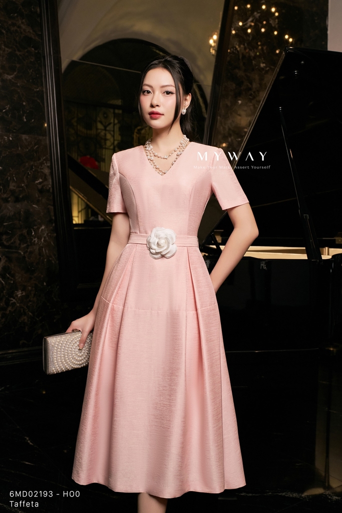 Đầm xòe dưới trên ôm,dài qua bắp,có túi, có lót. Tinh tế cùng cổ tim mang lại cảm giác hiện đại, trẻ trung. Đầm ngắn tay, dáng chiết eo giúp vòng 2 nhỏ gọn thanh mảnh. Đính hoa cùng gam màu hồng tinh tế, bắt mắt tạo điểm nhấn cho người mặc.