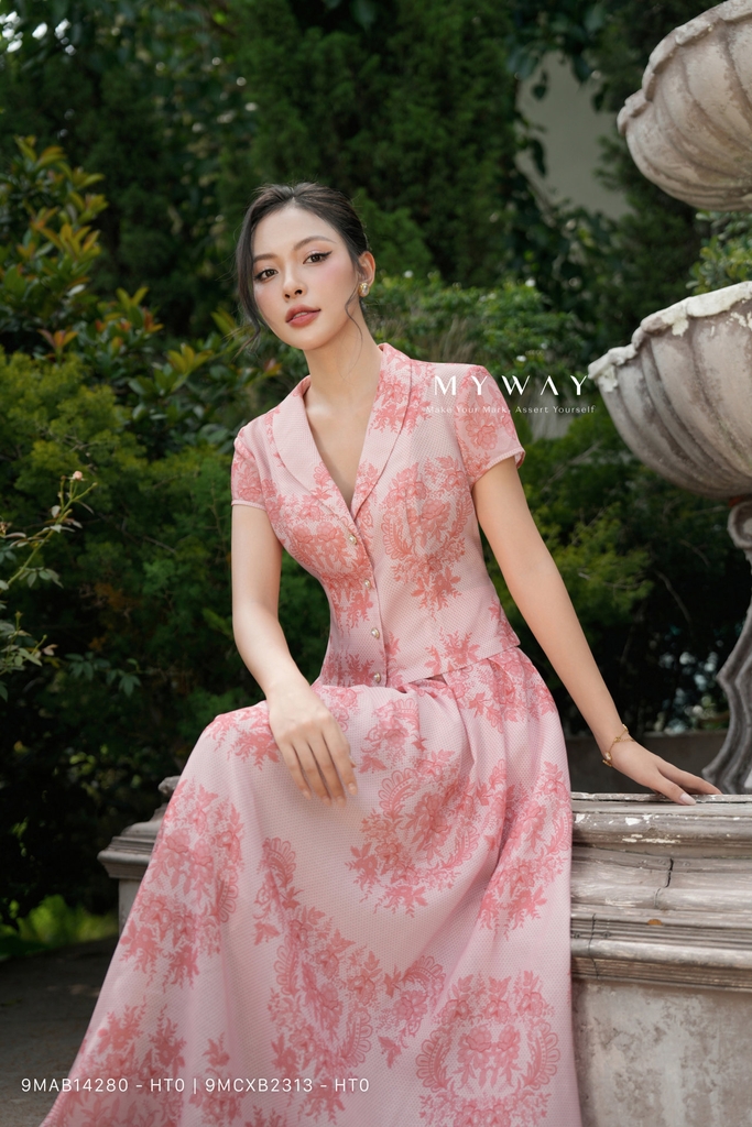 Áo kiểu ôm vừa, dài ngang hông, tay ngắn, được thiết kế với cổ biến kiểu tạo điểm nhấn hiện đại và cá tính. Sản phẩm sử dụng chất liệu nhập khẩu cao cấp: Gabadine họa tiết cho màu nền hồng họa tiết hồng và nền be họa tiết xanh, vải lụa mềm mại cho nền đen họa tiết cam và sắc màu, mang đến cảm giác thoáng mát, nhẹ nhàng. Họa tiết sắc nét cùng kết cấu vải tinh tế làm nổi bật thiết kế, giúp người mặc thể hiện phong cách riêng biệt. Áo mang lại sự thoải mái, dễ phối đồ và phù hợp với nhiều hoàn cảnh sử dụng.