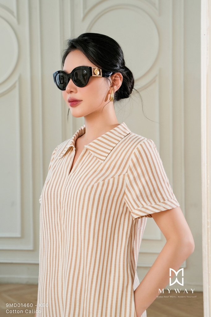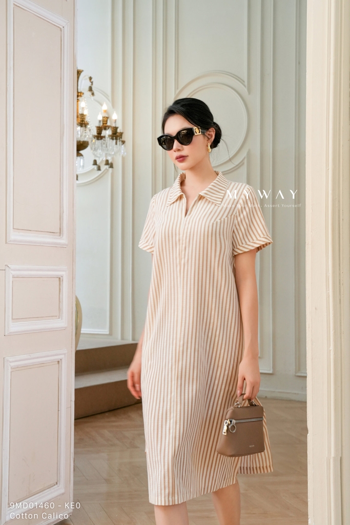 Đầm suông kẻ dọc nâu be được thiết kế tinh tế từ chất liệu Cotton Calico (thô đũi) nhập khẩu cao cấp, mang lại cảm giác thoải mái và thoáng mát. Phom dáng suông hiện đại, dài qua bắp chân, tay ngắn, có túi tiện lợi và xẻ nhẹ bên sườn giúp che khuyết điểm cơ thể một cách khéo léo. Họa tiết kẻ dọc thanh lịch kết hợp cùng tông màu trung tính dễ phối đồ, phù hợp cho nhiều phong cách và hoàn cảnh khác nhau.