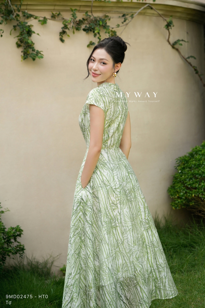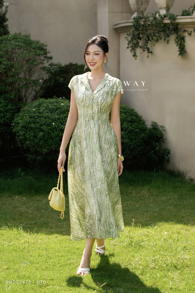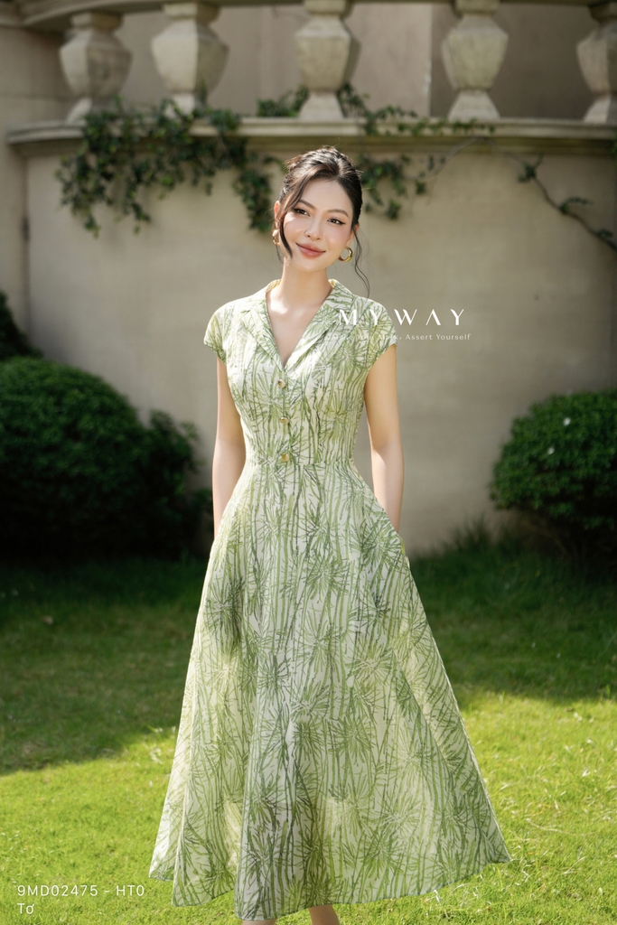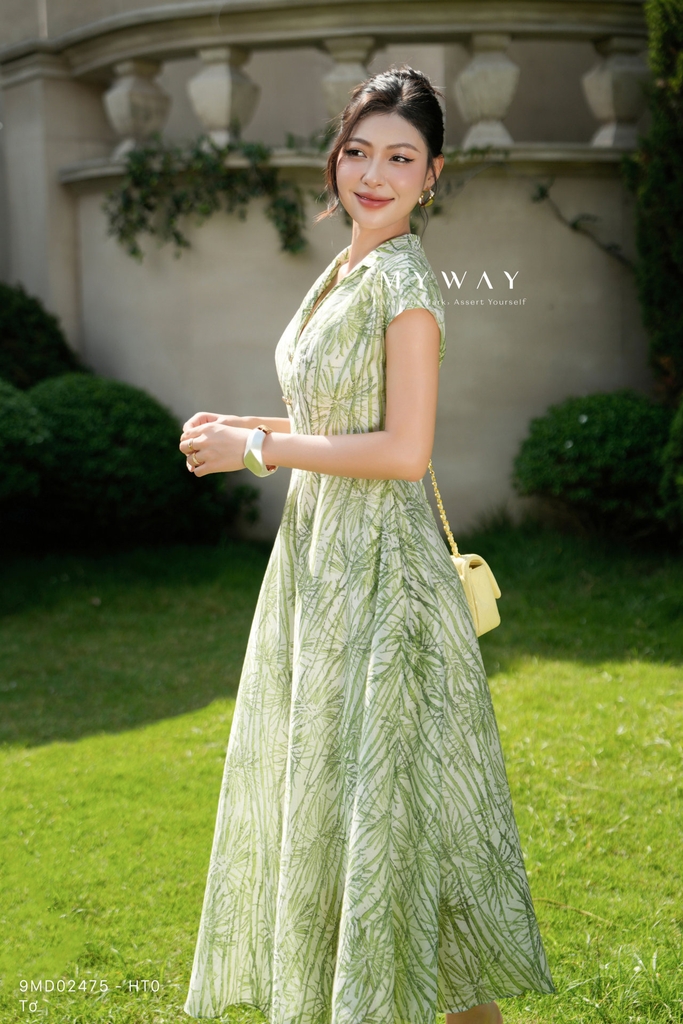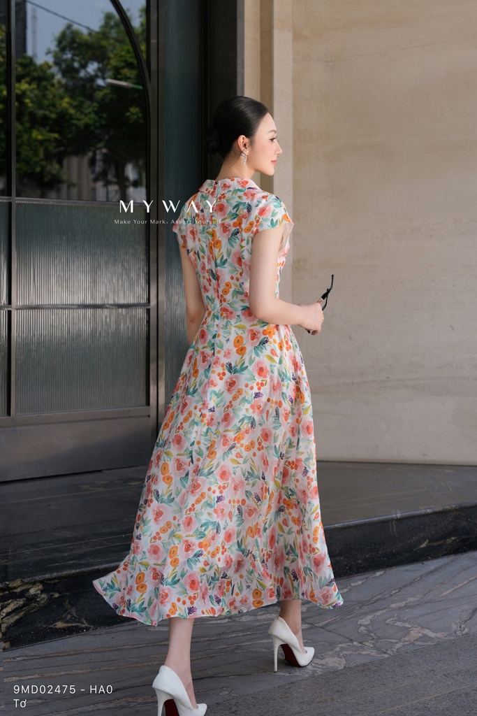 Đầm xòe trên ôm dưới xòe với 2 ve biến kiểu, dài qua bắp chân, vai chờm, khóa sau, có túi và lót bên trong. Đầm có nhiều màu và họa tiết đa dạng gồm họa tiết hoa trên vải tơ, chấm bi trắng trên nền đen, cùng họa tiết hỗn hợp hoa sắc màu với tông nâu be và đen be trên vải lụa nhập khẩu cao cấp. Chất liệu đã qua xử lý giúp giữ form dáng quyến rũ, hiện đại. Thiết kế dễ mặc, che khuyết điểm cơ thể và họa tiết in sắc nét mang lại vẻ thanh lịch, phong cách hiện đại cùng sự thoải mái tối ưu.