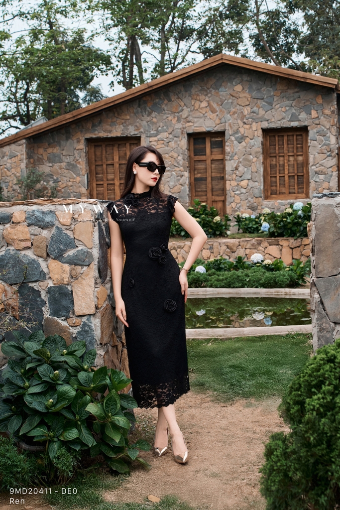Đầm ôm A cổ leo dài qua bắp, phom dáng ôm A thanh lịch. Tinh tế với phần hoa 3D trang trí thủ công cầu kỳ sang trọng mang lại cảm giác hiện đại, trẻ trung. Đầm tay chờm, dáng chiết eo giúp vòng 2 nhỏ gọn thanh mảnh. Sở hữu sắc đen kiêu kì trở thành điểm nhấn cho thiết kế đầm tiệc thời thượng.