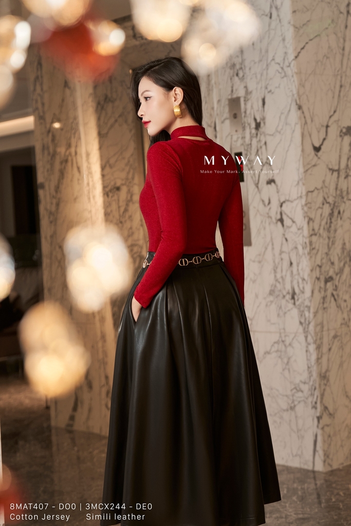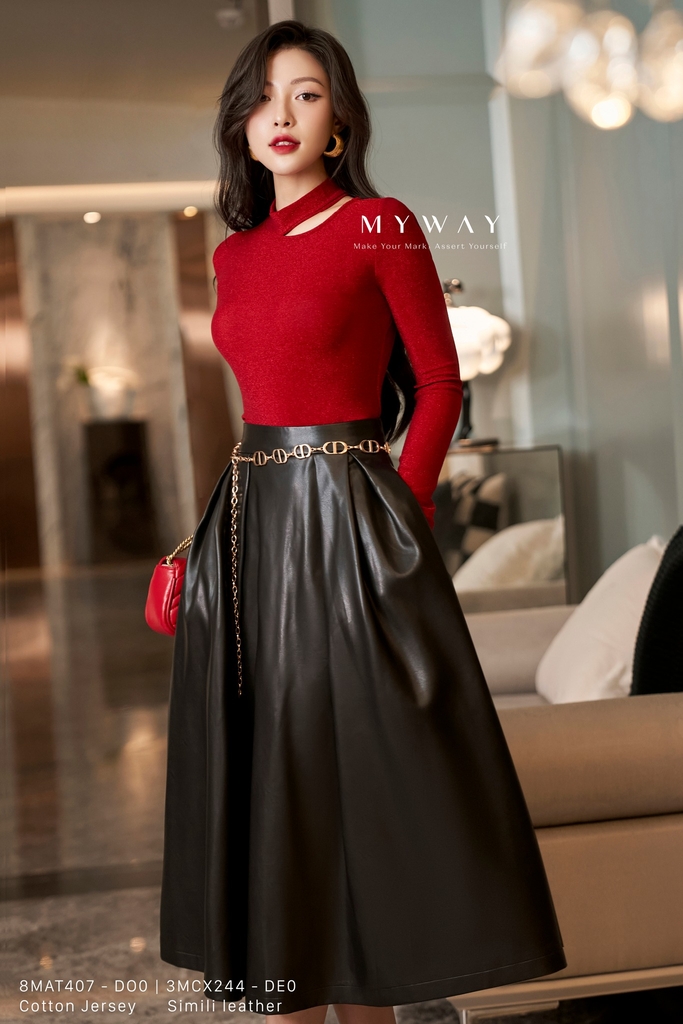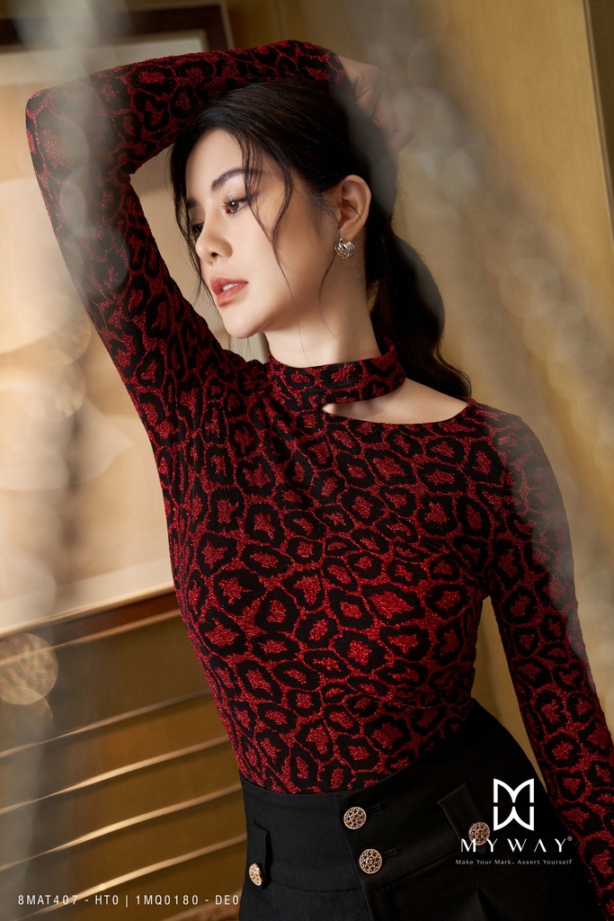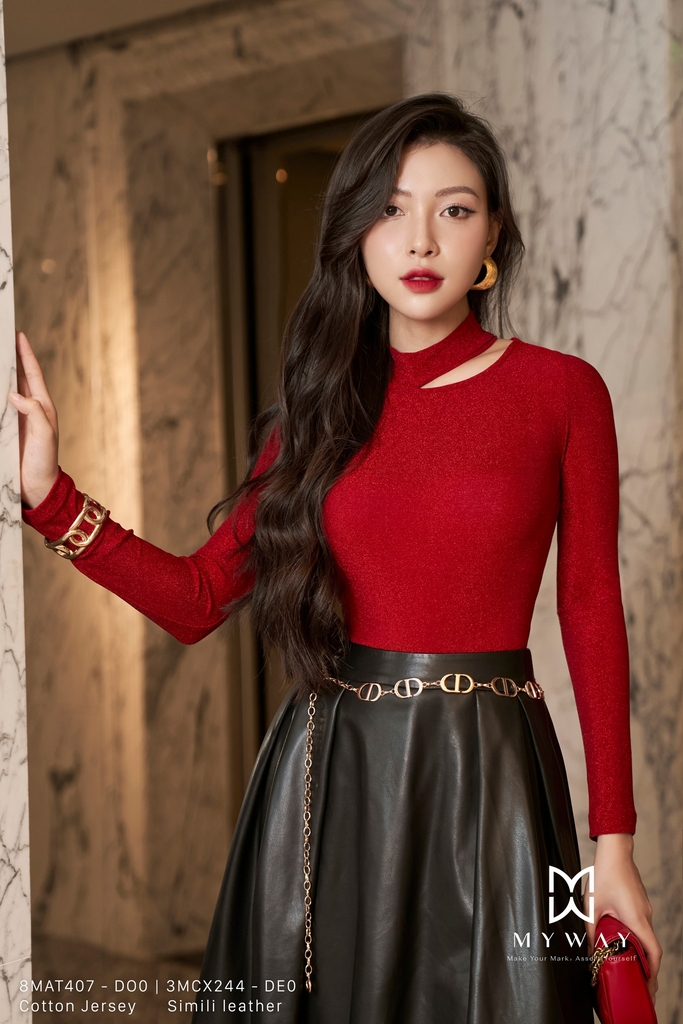 Áo thun ôm body cổ biến kiểu kim tuyến đỏ độc đáo và phong cách.